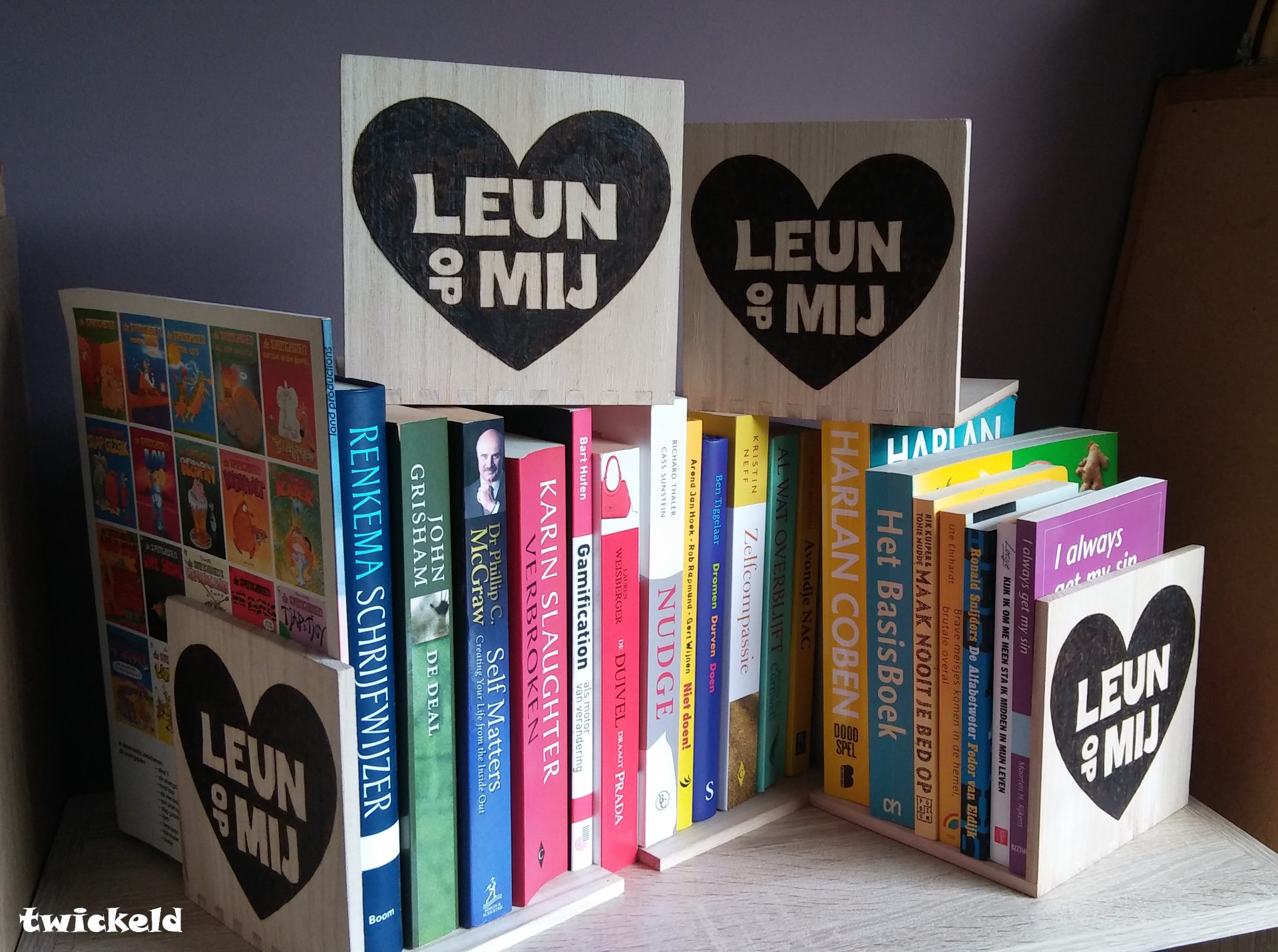 Houten Boekensteun: Leun op mij