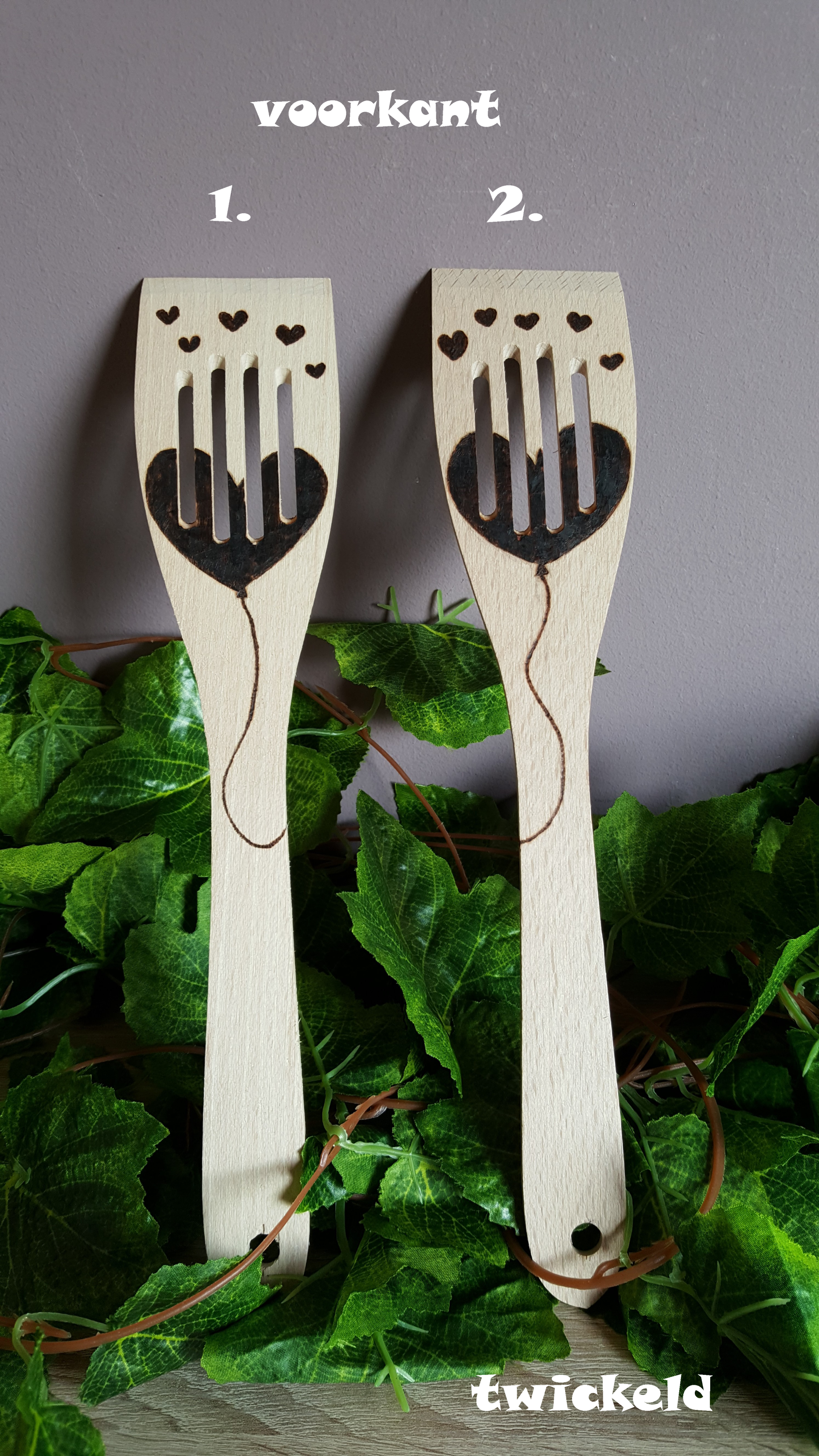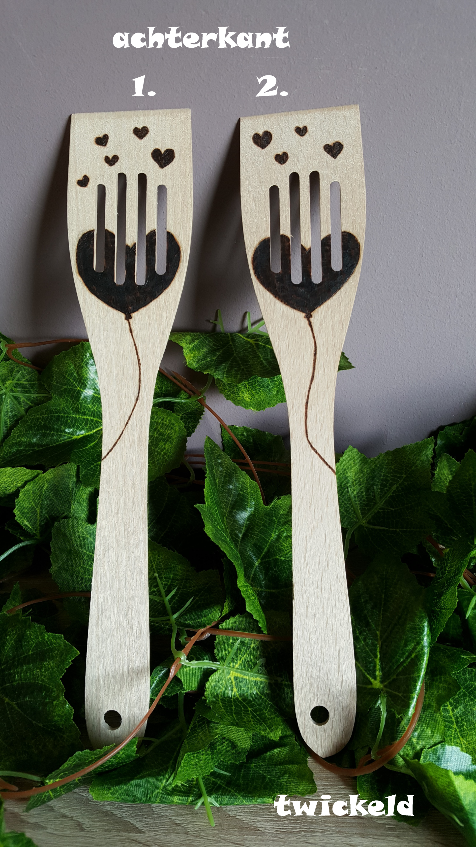 Deze houten spatel is aan beide kanten gehoutbrand.
