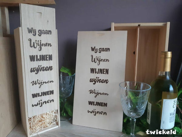 Houten wijnkistje: Wij gaan wijnen, wijnen, wijnen!!!