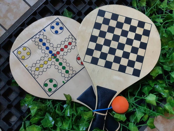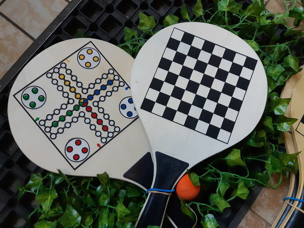 - Aan de andere kant is op het plankje een spelletje gedrukt: een schaakbord of een mens-erger-je-niet-speelveld (zo heb ik ze gekocht).