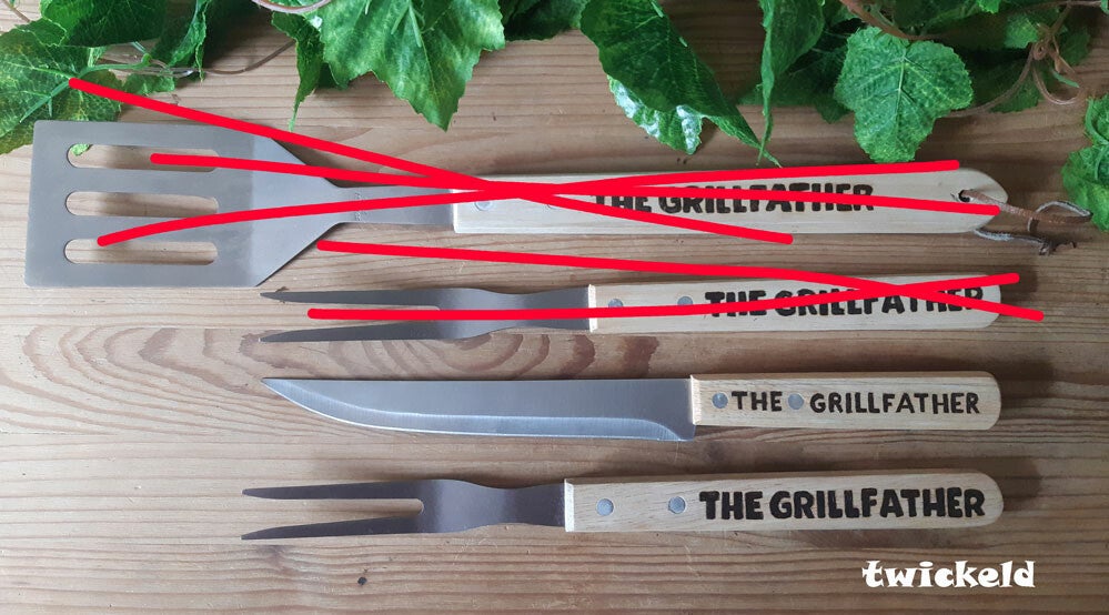 Setje BBQ mes en BBQ vork: The GrillfatherEenvoudig, maar grappig kado'tje voor een BBQ-liefhebber.Dit setje bestaat uit het mes en de vleesvorkAfmetingDe lengte is ongeveer 32cmBijzonderheden- Met de hand gehoutbrandVerzendkosten€ 3,84
