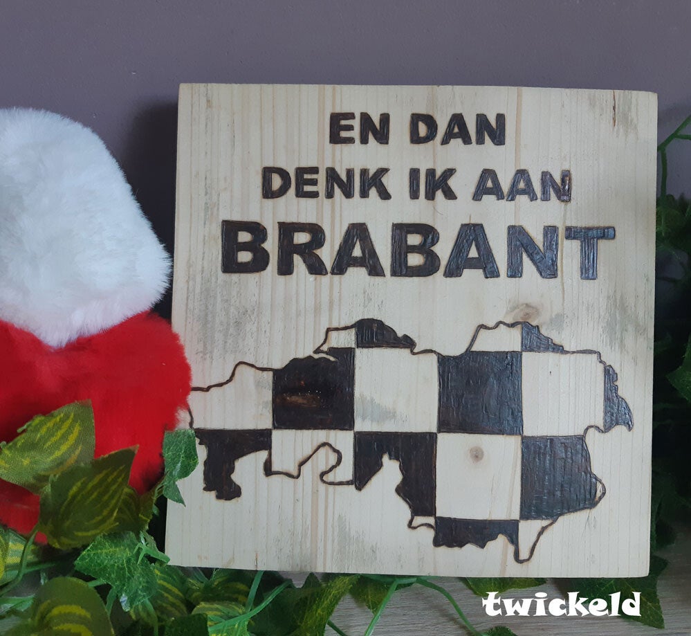 Dit houten blok kun je op een mooi plekje zetten of ophangen met het haakje dat aan de achterkant is bevestigd.