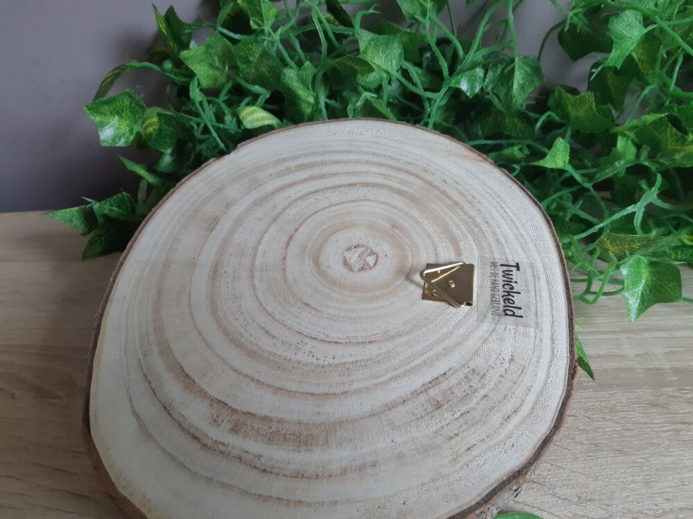 Je kunt deze boomschijf neerzetten op een mooi plekje of ophangen met het haakje dat op de achterkant is bevestigd.